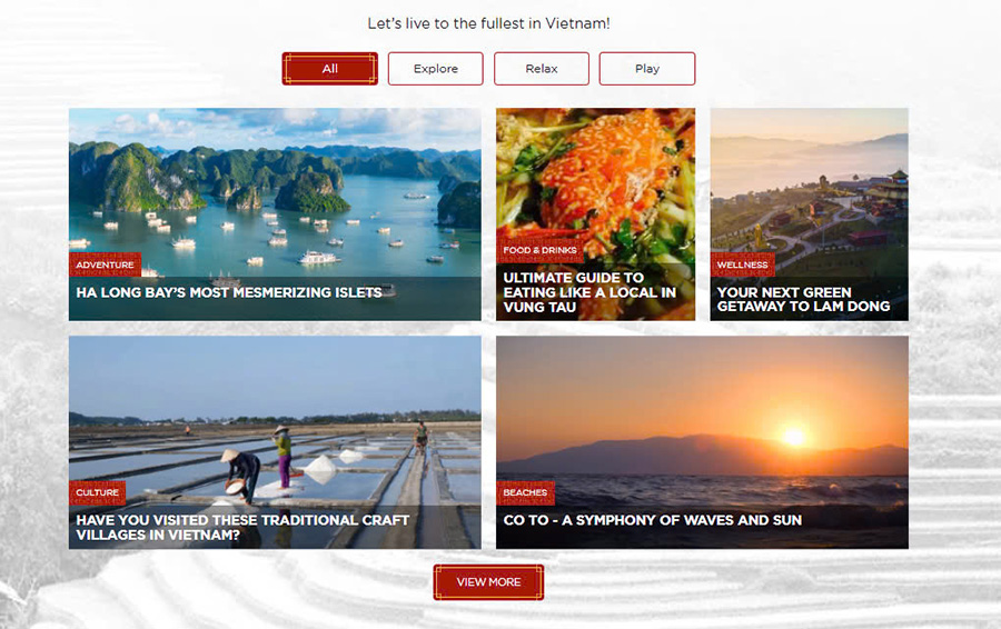 Giao diện website vietnam.travel quảng bá du lịch Việt Nam ra thế giới